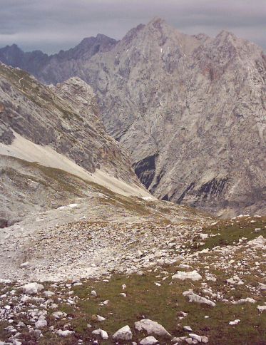 | Blick zurück. Ganz unten die KnorrHütte. Nach 8 Stunden auf ca. 2200m Höhe.