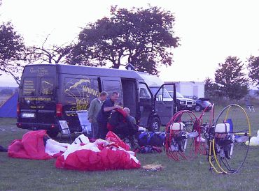 Der Rekord mit 102 Piloten in Basse Ham sollte am 28.Mai in Ballenstedt gebrochen werden. Es waren nur 79 Piloten bei 30°C noch geblieben. | ..und natürlich wieder einiges Gerät zum kaufen. Die wichtigsten Hersteller von neuem Material waren nicht vertreten. Links unten der Concorde.